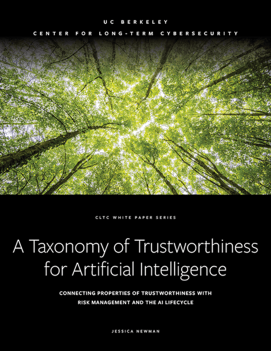 A new CLTC white paper, A Taxonomy of Trustworthiness for Artificial Intelligence: Connecting Properties of Trustworthiness with Risk Management and the AI Lifecycle, by Jessica Newman, Director of CLTC’s AI Security Initiative (AISI) and Co-Director of the UC Berkeley AI Policy Hub, is a complement to the newly released AI Risk Management Framework (AI RMF), a resource developed by the U.S. National Institute of Standards and Technology to improve transparency and accountability for the rapid development and implementation of AI throughout society.